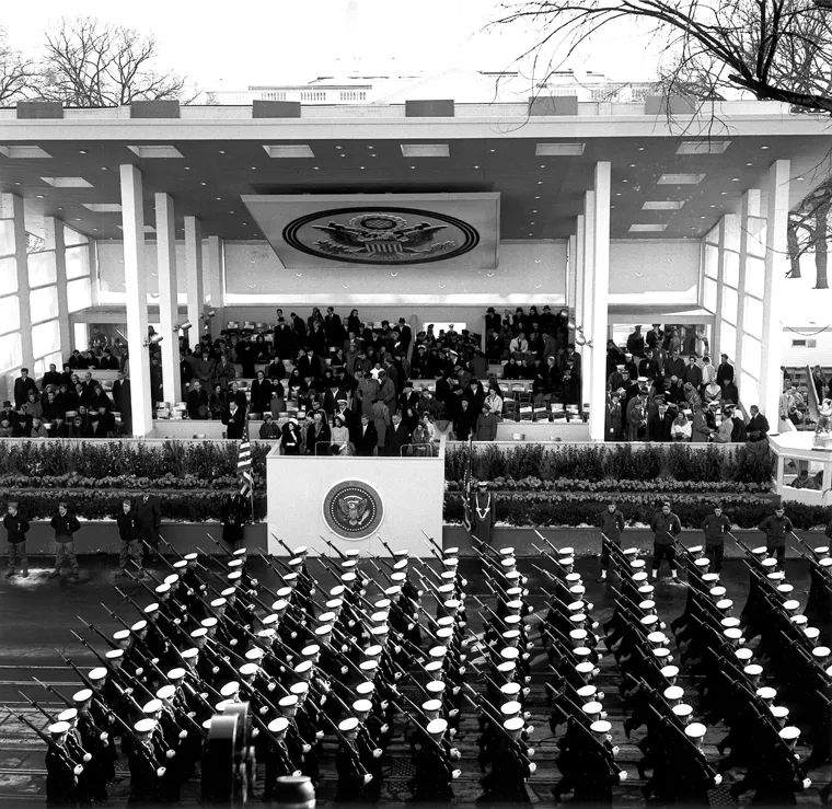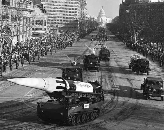 1961 年肯尼迪就職典禮時,冷戰已經進入高潮,因此閲兵時拉出了大量新型導彈向世界展示。