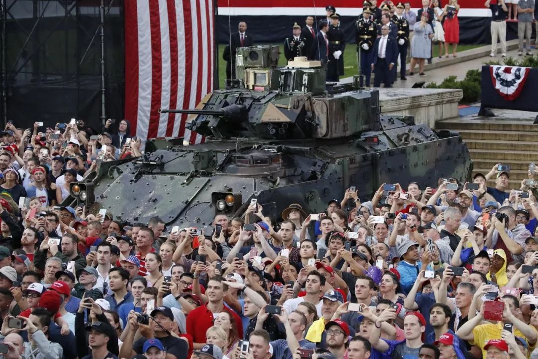 不過2019年7月4日國慶日這天,特朗普終於還是如願以償舉行了閲兵式,並且把坦克和裝甲車弄到了現場。不過規模嘛…..只有兩輛。