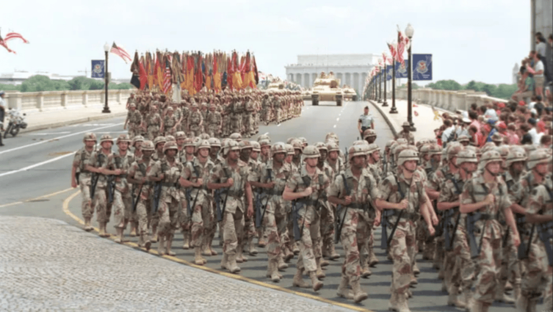 1991年,美國正處於最鼎盛時期,美軍在海灣戰爭擊敗伊拉克取得大勝,在老布什總統主持下,美國各地幾乎每天都會舉行紀念活動,其中華盛頓和紐約的規模最大。這被認為是第二次世界大戰結束以來最大的軍事慶典。