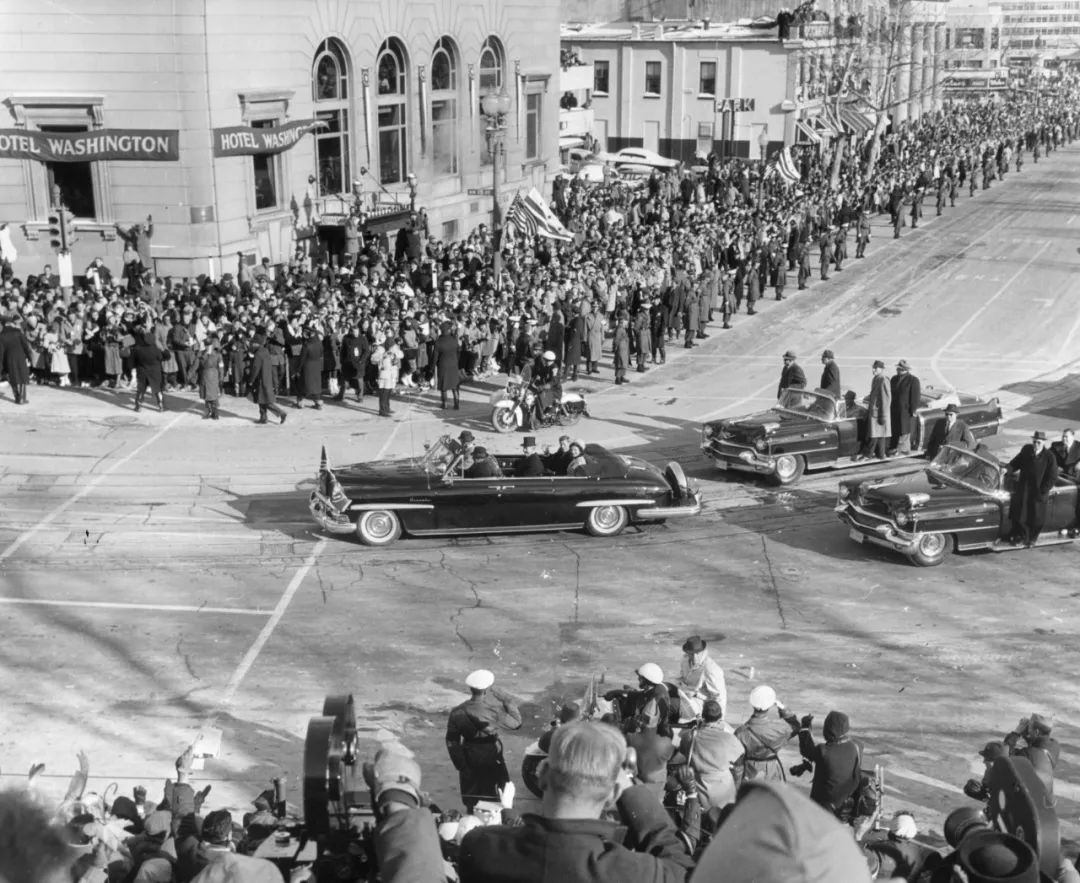 1953 年美國總統艾森豪威爾的首次就職典禮上,舉行了美國曆史上最長的閲兵遊行。因為是冷戰初期,此次閲兵展示了大量新式裝備,最大看點是核大炮和第一款彈道導彈。
