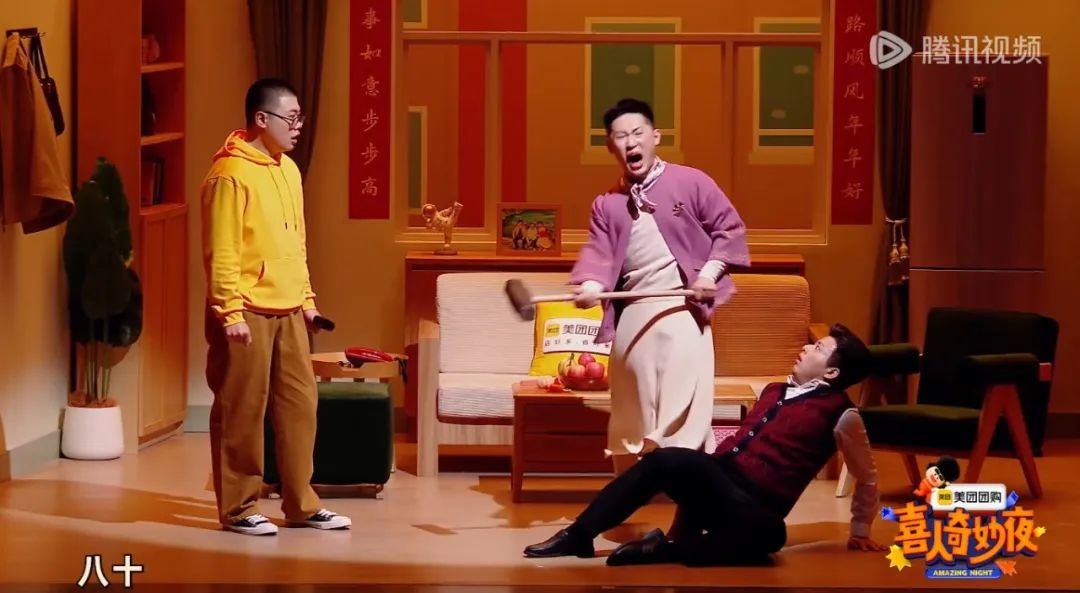 這份荒誕代表着:那股打破傳統、創新喜劇的“少年心氣”,也感染到了“小品世界”裏的媽媽,喚醒她推翻了被預設的自己。
