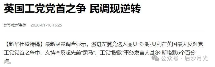 2020年1月,工黨舉行黨主席選舉,有兩個人呼聲最高,一個是斯塔默,另一個是女議員麗貝卡(中間這位),最左邊是支持率不高的麗莎·南迪。