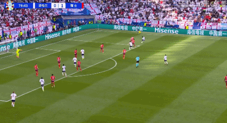 但瑞士很清醒,今天英格蘭開場高逼搶時,瑞士遂用恩博洛回撤接應,打兩翼反擊,尋找英格蘭的肋部空擋。當時瑞士多次反擊兩翼起球,急得英語解説員大叫“禁區裏瑞士有人數優勢!”這一波反制後,英格蘭也就不太敢全線壓上了: