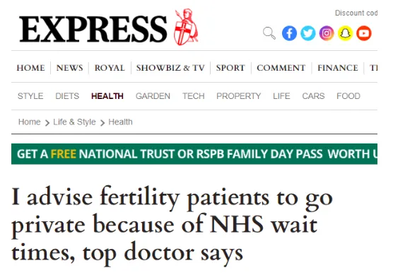在去年6月11號的時候,英國《每日快報》報道,NHS(就是免費醫療系統)全科醫生協會主席公開呼籲讓排隊等待看病的病人去私立醫院看病,因為他認為現在NHS的等待時長就是在消耗生命。