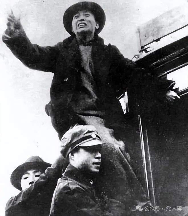 1935年12月,北京大學學生黃敬在電車上演講,戴學生帽的是東北大學學生宋黎
