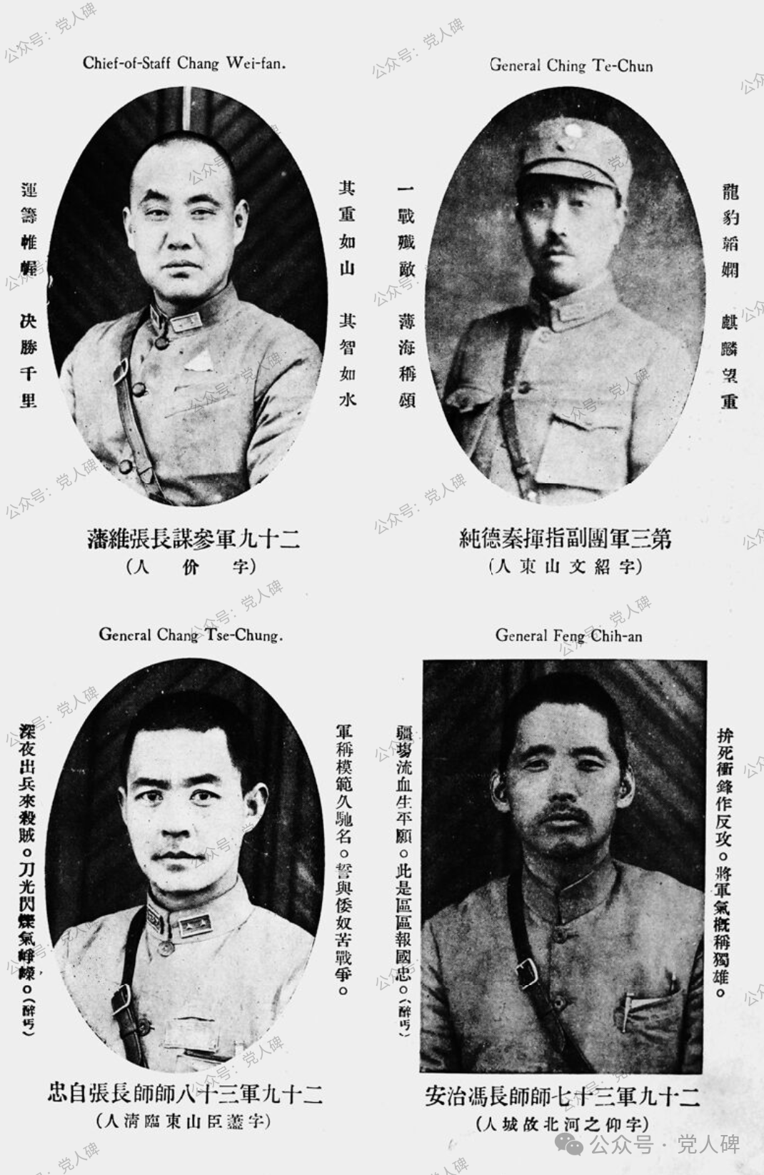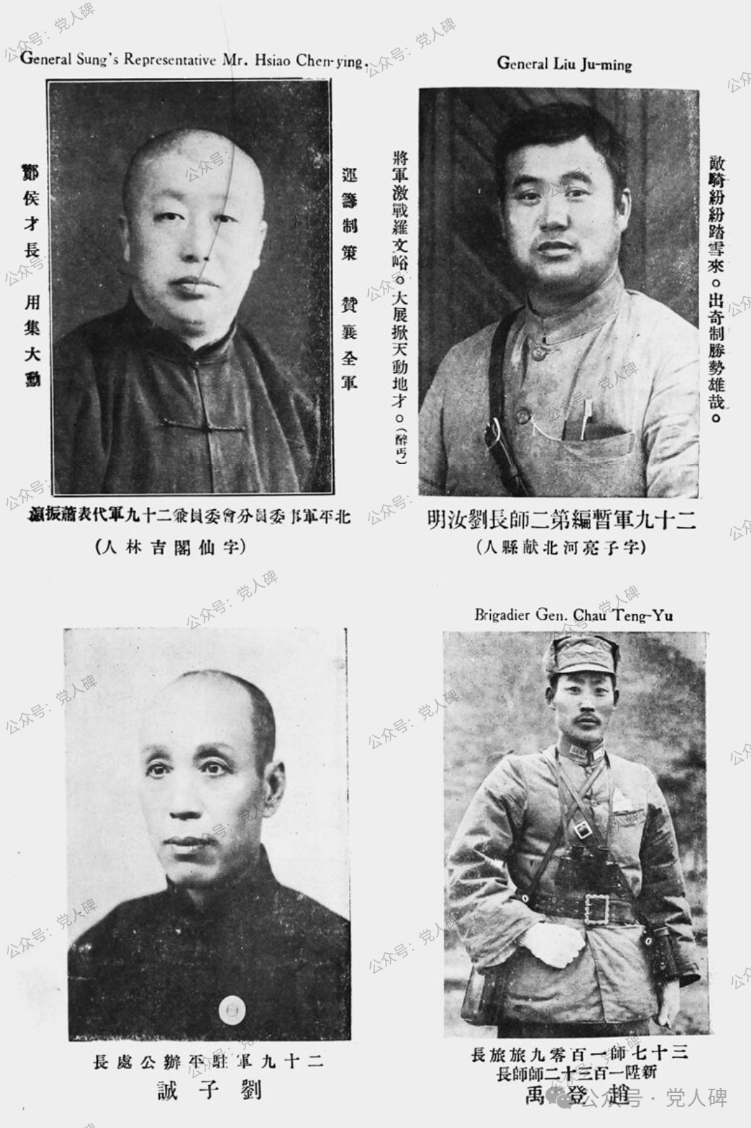 1933年,國民黨簽訂喪權辱國的《塘沽協定》,右起戴眼鏡者鐵道部政務次長、陸軍少將錢宗澤,再右首席代表、參謀本部廳長、陸軍中將熊斌
