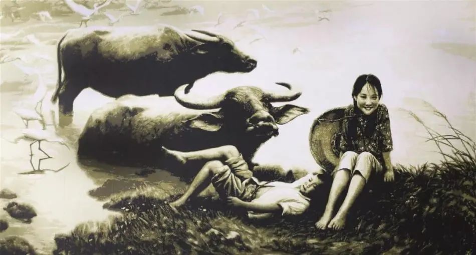 光影強烈、黑白灰分明,人物笑意盈盈、栩栩如生,這實在是太像一幅下鄉寫生的素描作品了。