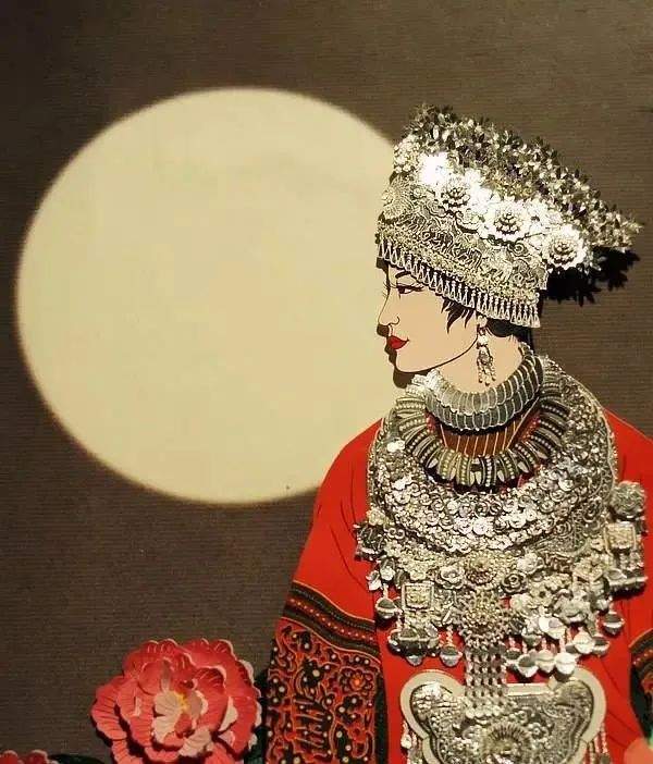 這才有了3D立體的剪紙設計作品《春水長流》,李寶鳳採用多層套色剪紙的技法,將苗族少女的頭飾呈現得極為有重量感,甚至在太陽底下熠熠閃爍光芒。