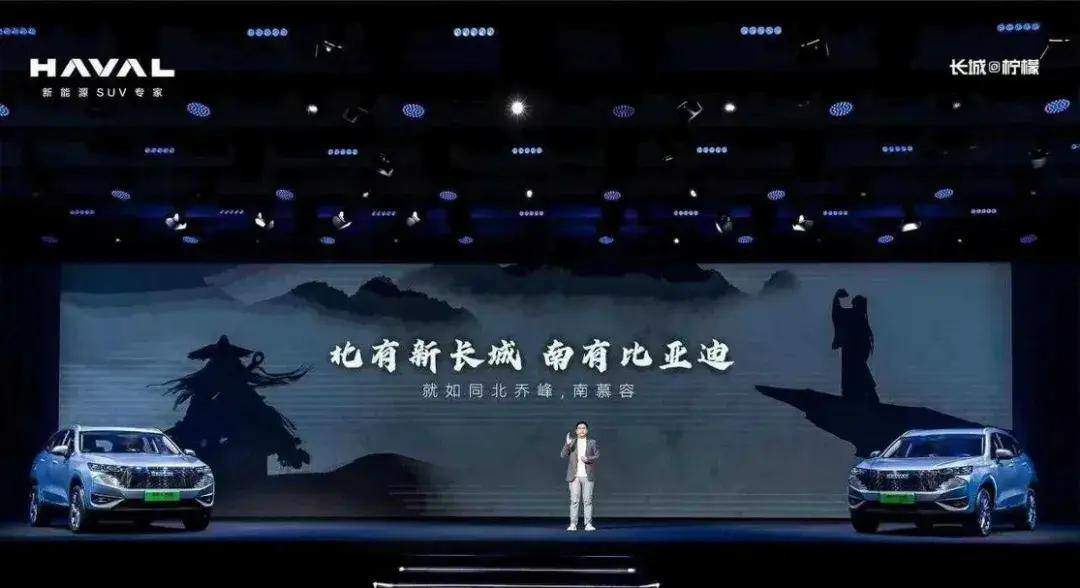 比如在此前某場發佈會上,長城把自身比亞迪比為“北喬峯、南慕容”,聲稱“北有新長城,南有比亞迪”。但大家都知道的是,在《天龍八部》裏,慕容復並不是正面人物,而且結局悽慘,其實是沒資格和喬峯相比的。一邊用比亞迪來抬高自己的身價,一邊去貶低比亞迪——這樣的營銷話語,很難不讓消費者覺得是在“陰陽怪氣”。