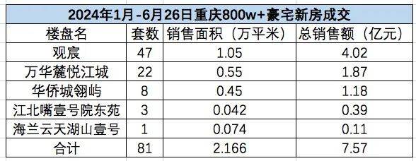 重慶800萬級的豪宅成交總套數在81套,其中觀宸作為2023年的銷冠,今年繼續領跑市場,成為當地改善高端客羣的首選
