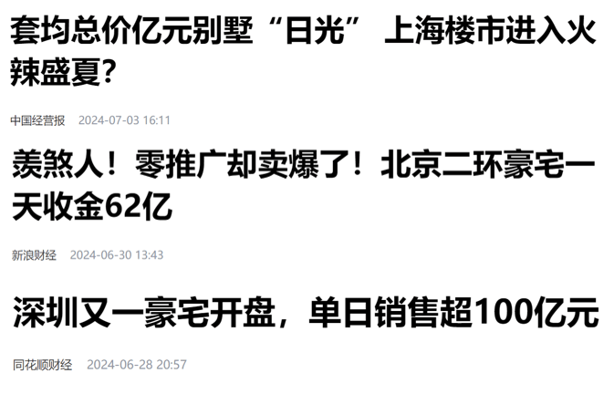 就這樣,僅僅只用了3天時間,四個項目就賣了超過282億元,給上半年的豪宅市場畫下了一個圓滿的句號