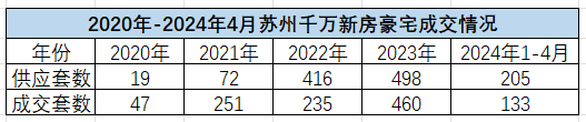 不過,蘇州由於豪宅供應量減少,導致上半年的成交量也隨之降低,1到4月千萬級豪宅僅成交了133套,遠不如去年同期水平
