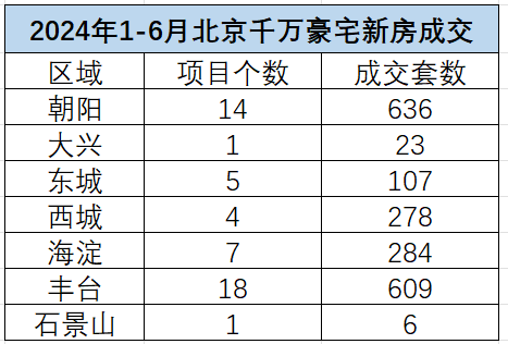 北京方面,今年上半年50個豪宅項目共成交1943套,主要分佈在7個區,尤其是朝陽和豐台兩大區域