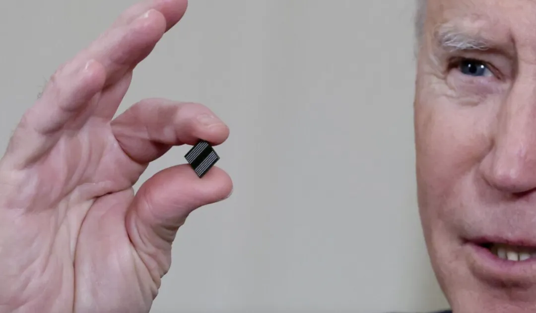 2021年2月24日,美國總統拜登在美國華盛頓白宮國宴廳,手持半導體芯片發表講話(圖源:路透社)