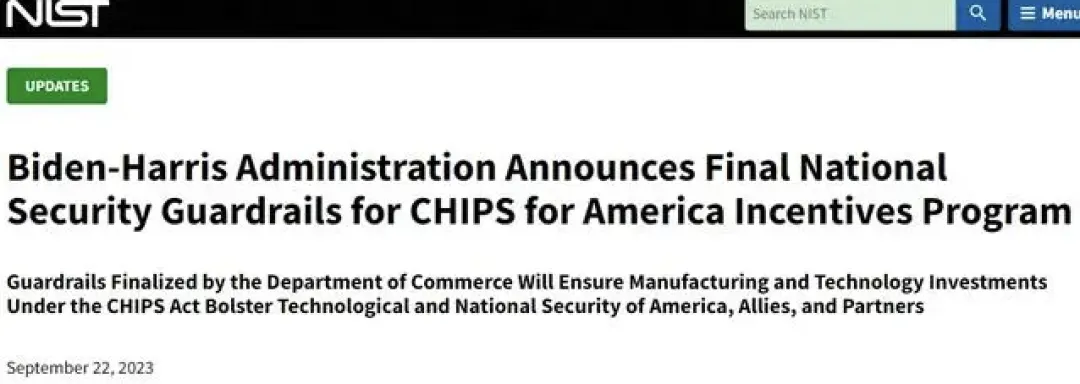 美國商務部宣佈“護欄”規則的最終規定(圖源:美國商務部國家標準與技術研究所官網)