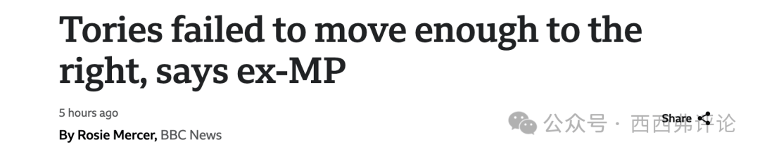 保守黨另外一位競選失敗的議員公開表示,保守黨失敗的原因就是往右邊轉的不夠多。