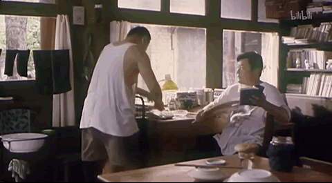 兒子看在眼裏,不是滋味地離開,只留下笑呵呵的他。