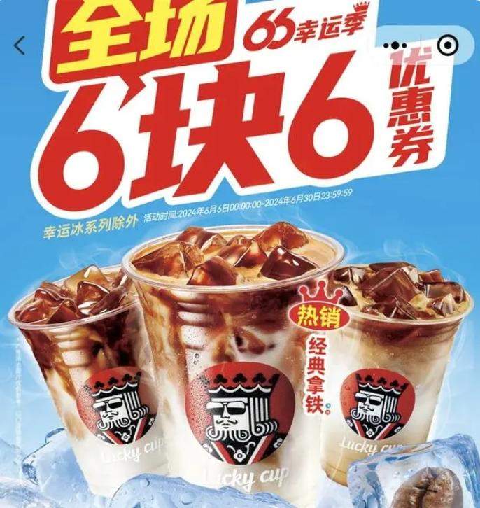 賣咖啡=燒錢,的情況進入2024年非但沒有停止,大有愈演愈烈之勢。在剛剛過去的6月,幸運咖喊出了“開啓咖啡6塊6時代”,從6月6日到30日,幸運咖全場6塊6封頂,聲勢浩大,劍指9.9的前輩們。