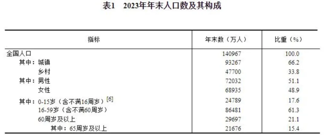 2023年年末,60歲以上人口規模2.97億,佔總人口比重高達21.1%,相較於2022年增加了1.3個百分點。