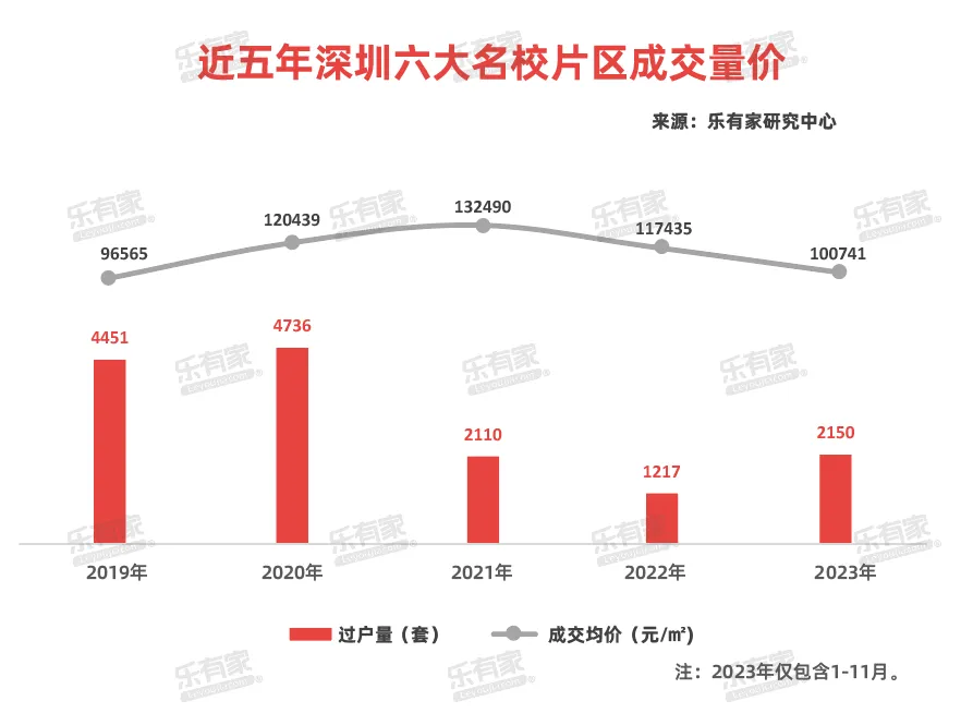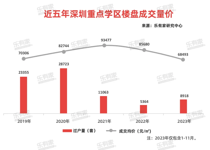 過去五年,深圳重點學區樓盤整體成交價格從高點時期的9.35萬/平方米跌至如今的6.85萬/平方米,跌幅26.7%。