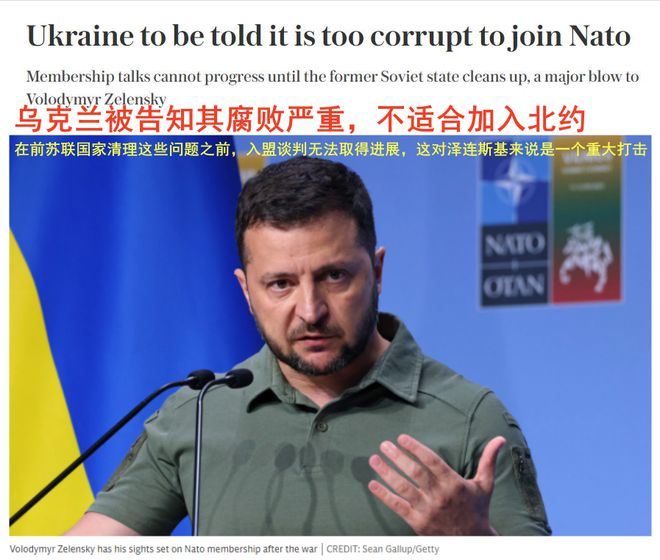 剛剛,看到一條醒目的標題**“烏克蘭將被告知:因腐敗嚴重,現在不適合加入北約”****。**