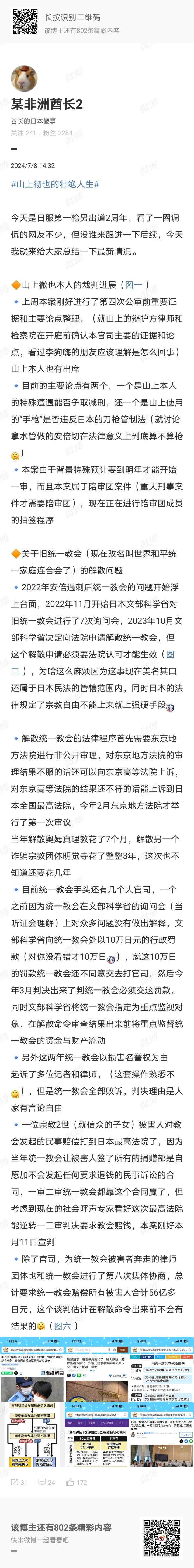🔹一位宗教2世(就信眾的子女)被害人對教會發起的民事賠償打到日本最高法院了,因為當年統一教會讓被害人簽了所有的捐贈都是自願加不會發起任何要求退錢的民事訴訟的合同,一審二審統一教會都靠這個合同贏了,但考慮到現在的社會呼聲專家看好這次最高法院能逆轉一二審判決要求教會賠錢,本案剛好本月11日宣判