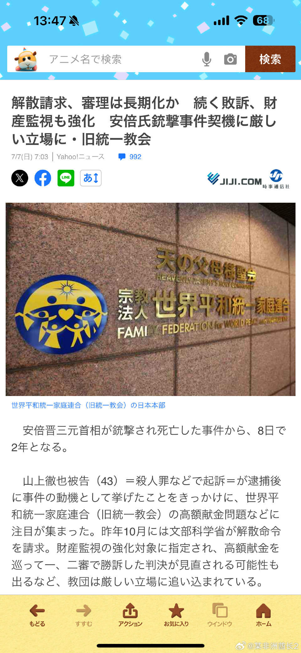 🔶關於舊統一教會(現在改名叫世界和平統一家庭連合會了)的解散問題