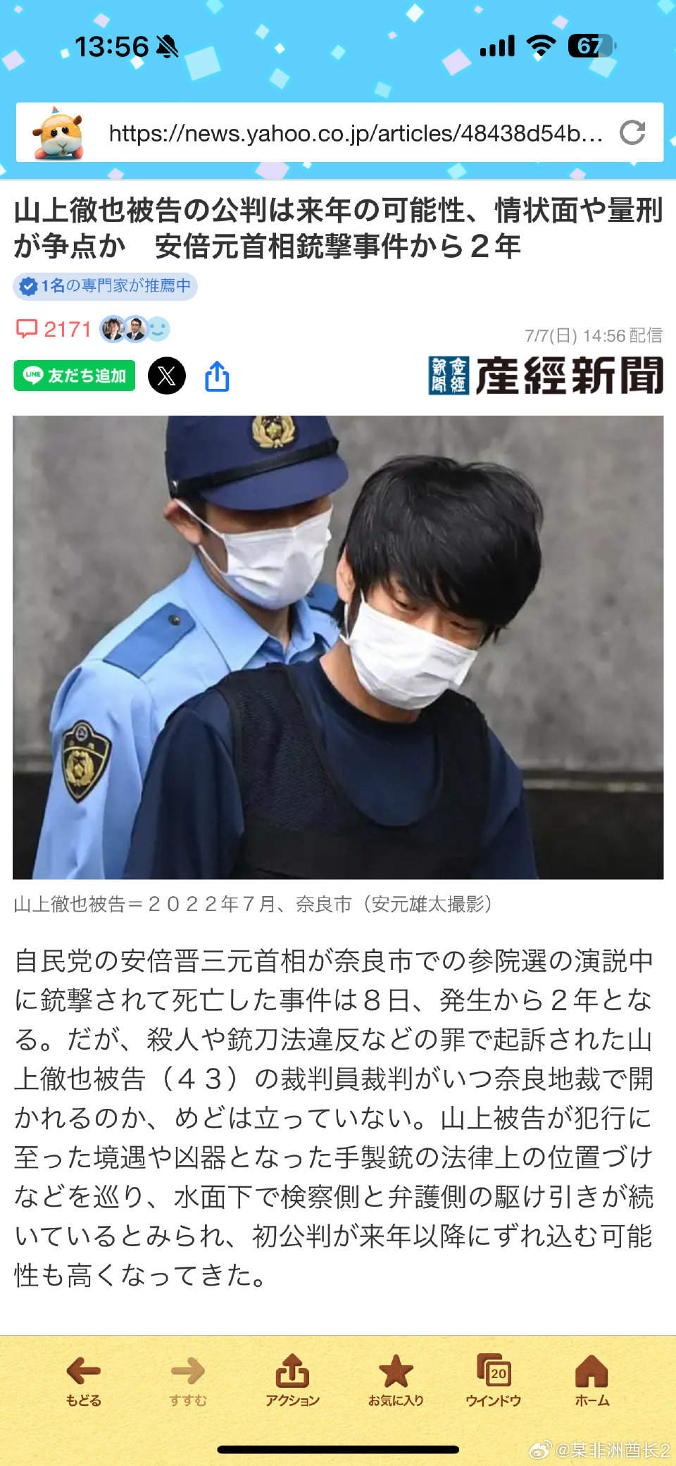 🔹目前的主要論點有兩個,一個是山上本人的特殊遭遇能否爭取減刑,還一個是山上使用的“手槍”是否違反日本的刀槍管制法(就討論拿水管做的安倍切在法律意義上到底算不算槍
