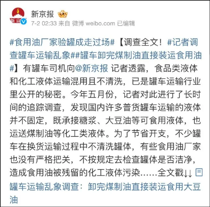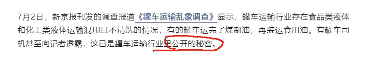運完煤油的車,車裏還殘留十幾升煤油呢,他們不清洗,直接就用來運食用大豆油。