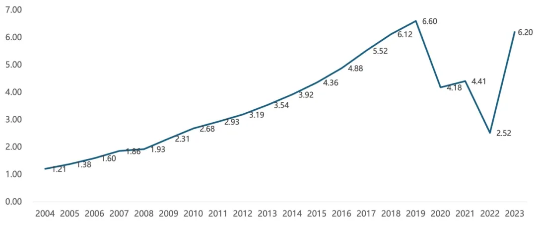 2、我國民航市場高速增容。空中客車天津生產線投產的15年,也是中國經濟以及中國民航飛速發展的15年。天津總裝線投運的2009年,中國民航旅客運輸總量僅為2.3億人次,2023年達到6.2億人次(疫情前的2019年曾達到6.6億人次),提升了170%;相應地,中國民航機隊規模也從2009年底的1417架增加到2023年底的4270架,增長了201%。空客天津生產線的誕生正逢其時。