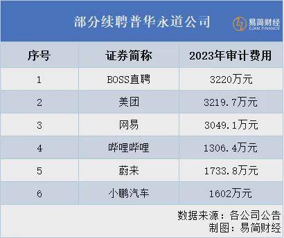 除去阿里,5月-6月,美團、BOSS直聘、網易、嗶哩嗶哩、蔚來、小鵬等公司也相繼發佈公告稱,擬續聘普華永道。