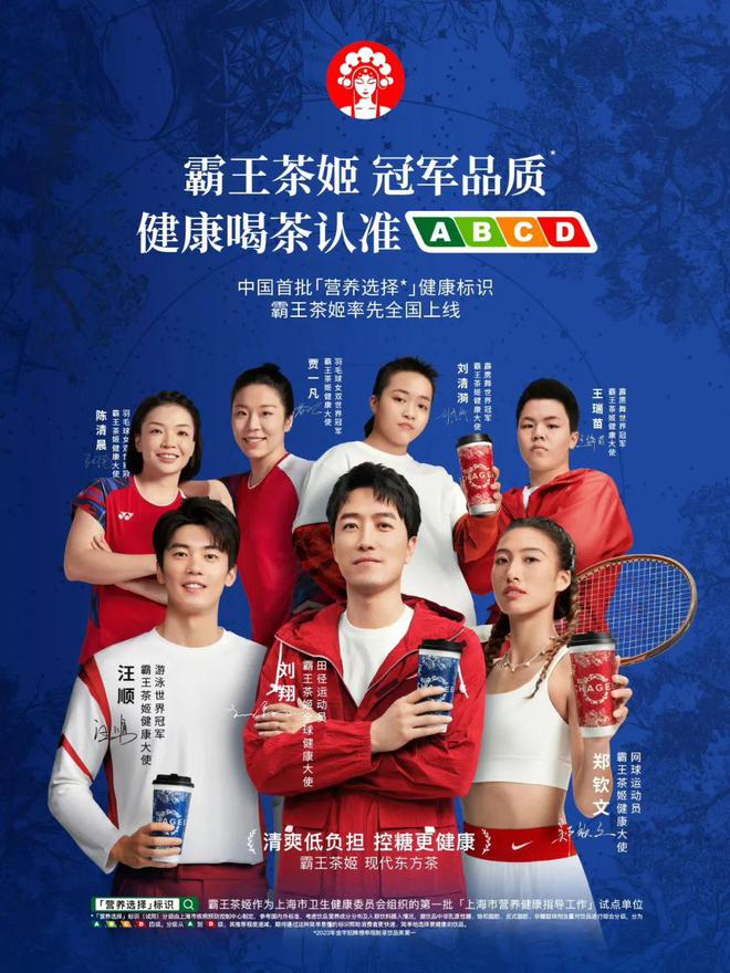 喜茶這邊眼看攻勢兇猛,又打出「全線水果茶0卡糖免費」+「慢糖」的組合拳,而霸王茶姬則在近期持續擴大着自己的運動員陣容——游泳運動員汪順、羽毛球運動員陳清晨、賈一凡、霹靂舞運動員劉清漪、王瑞苗以及劉翔,都已經被霸王茶姬「納入麾下」。