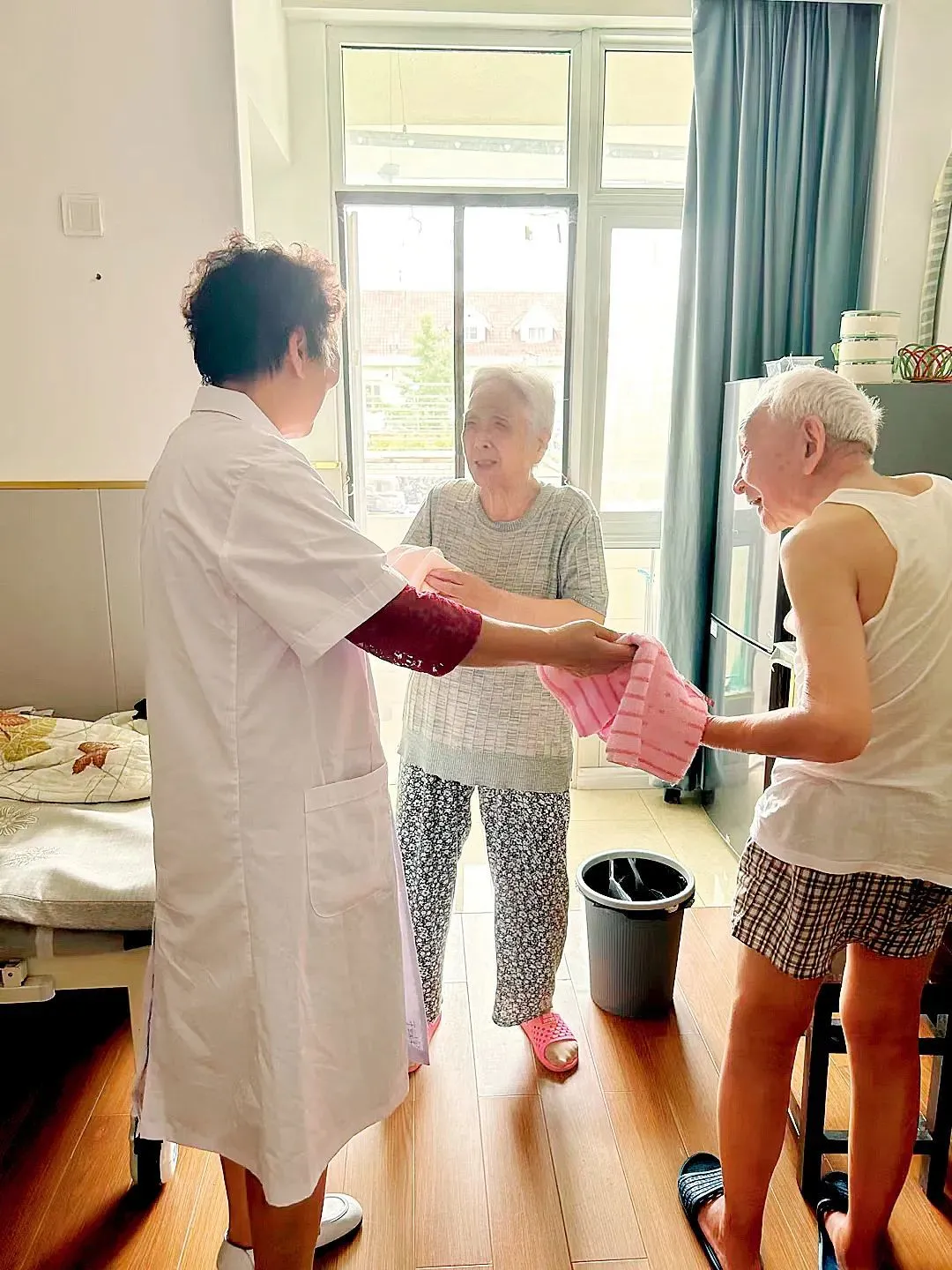 謝榮有從醫經歷,被安排到社區養老機構,指導老人們用藥、做保健操。她還向社區提出,可以給沒有孩子的年輕夫妻義診。