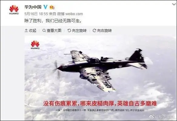 2020年5月16日,華為公司在社交媒體上發佈了一張圖:渾身彈孔累累的伊爾2攻擊機,依然堅持飛行,終於安全返回