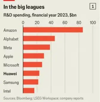 文章指出,2023年,華為的銷售額約為1000億美元,約為美國科技公司甲骨文的2倍;它的規模雖然只有韓國手機制造商三星的一半,但在研發方面的支出卻超越了三星。華為2023年的研發預算為230億美元,只有Alphabet(谷歌母公司)、亞馬遜、蘋果和微軟這幾家美國科技巨頭超過了它。2023年華為的利潤約為123億美元,與美國通信設備巨頭思科不相上下,遠遠超過其主要競爭對手愛立信和諾基亞。且後兩者正在裁員,華為的員工數量卻在持續擴張,目前人數比2021年增加了1.2萬人。