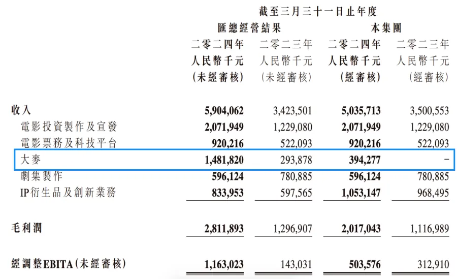 大麥2021財年至2023財年財務數據/圖源:阿里影業公告