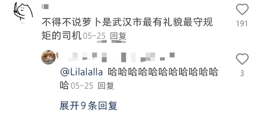 甚至有網友認為,蘿蔔快跑是全武漢最有禮貌,最守規則的司機。