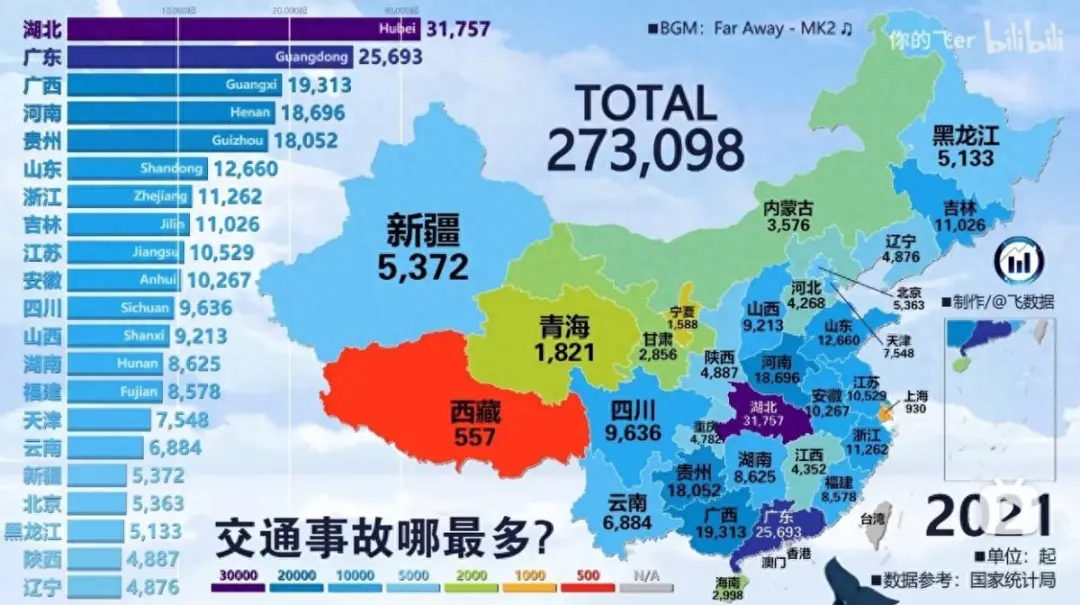 但是,從2021年開始,湖北已連續多年力壓廣東,“勇奪”交通事故數量第一的名號。