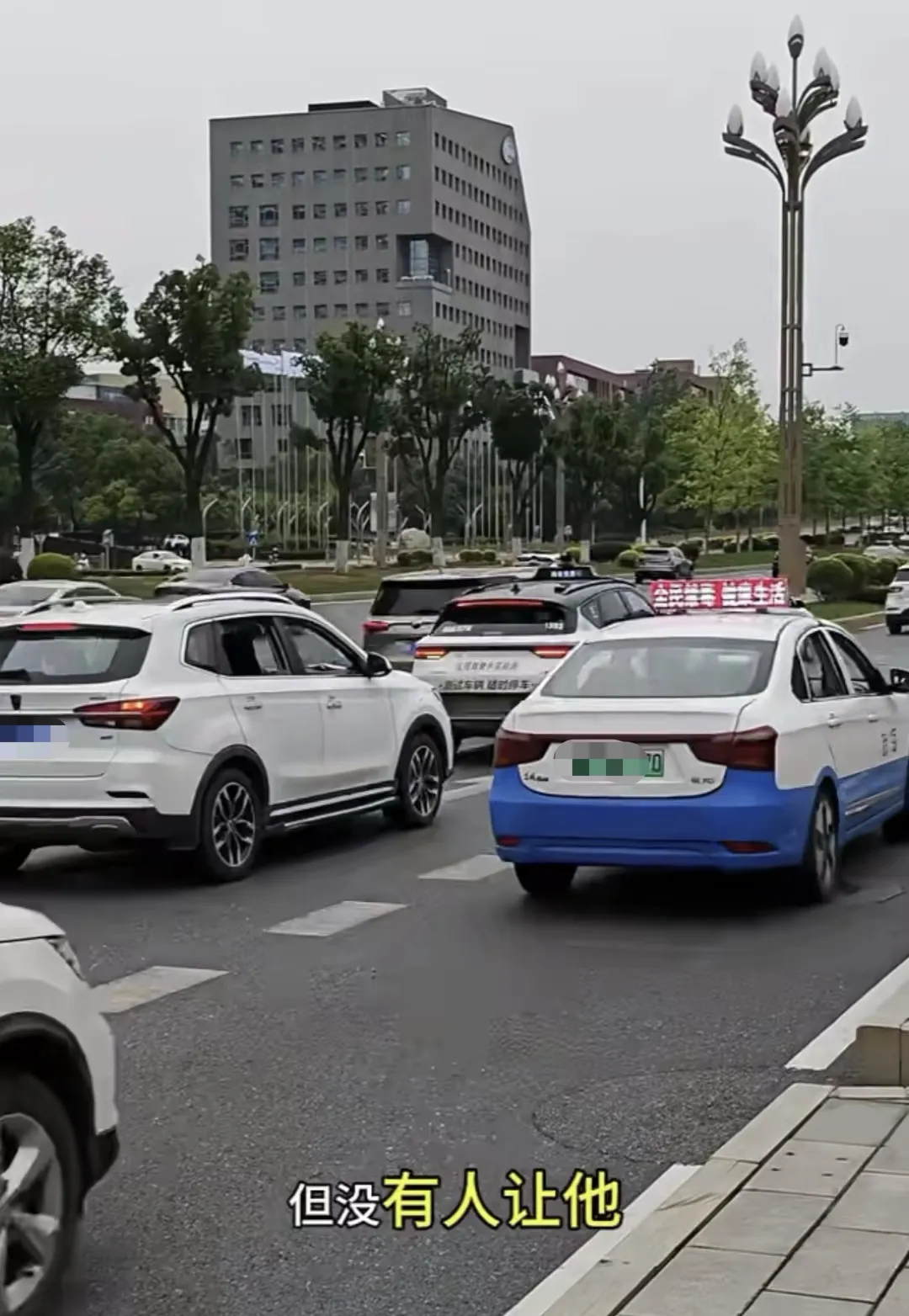 即便它打了轉向燈,甚至停在原地等了幾十秒,都沒人讓行。