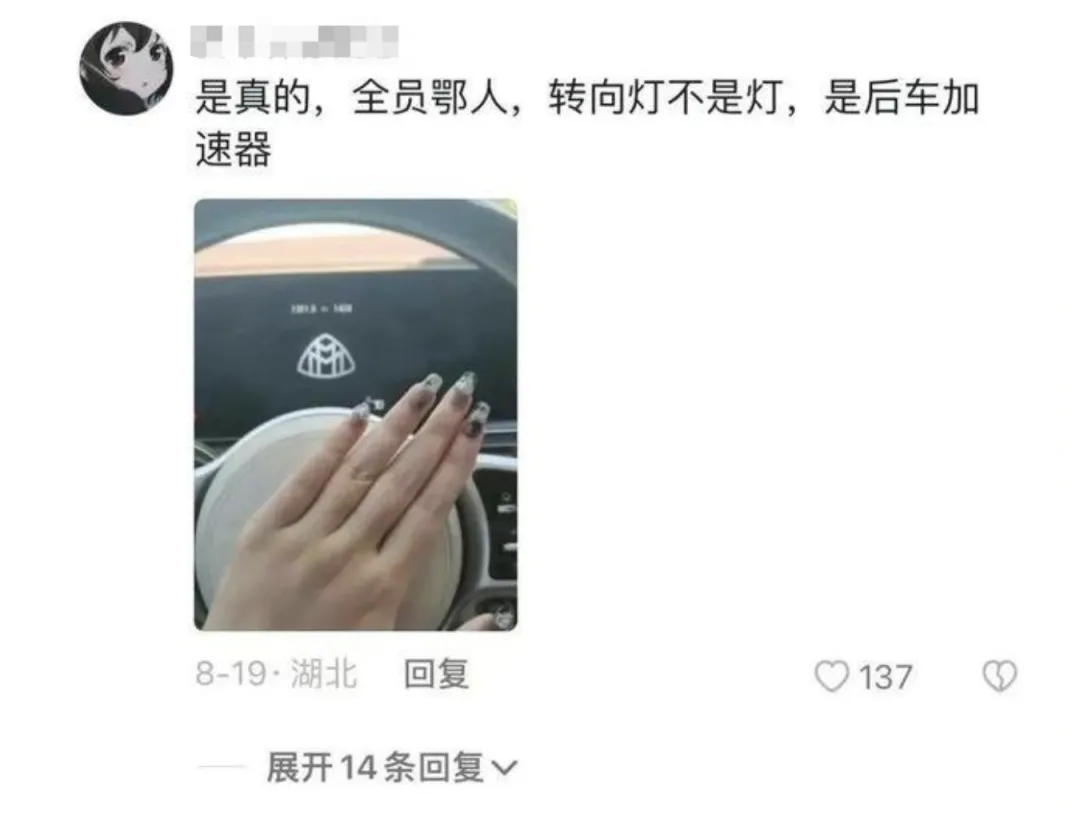 有武漢人表示,轉向燈不是變道提醒,而是後車的一鍵加速器。