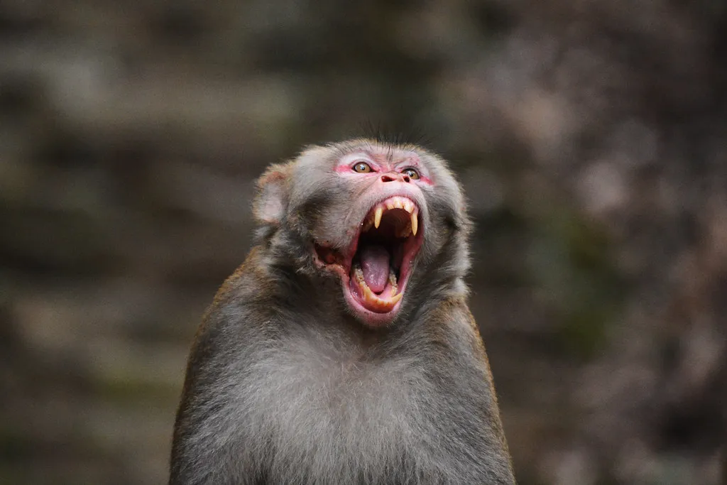 瞧瞧猴子的犬齒,就知道這些猢猻並不好惹(圖片來源:flickr.com)