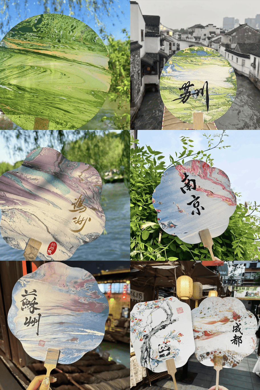 揚州、蘇州、南京、蘭州……每個地方的遊客,都在扇面留下獨一無二的城市印記。