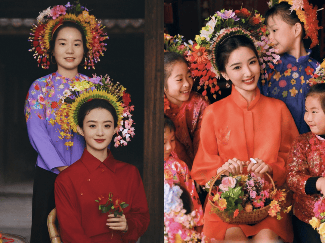 誰穿上這花團錦簇的一身紅衣,都能襯出國泰民安的氛圍感。