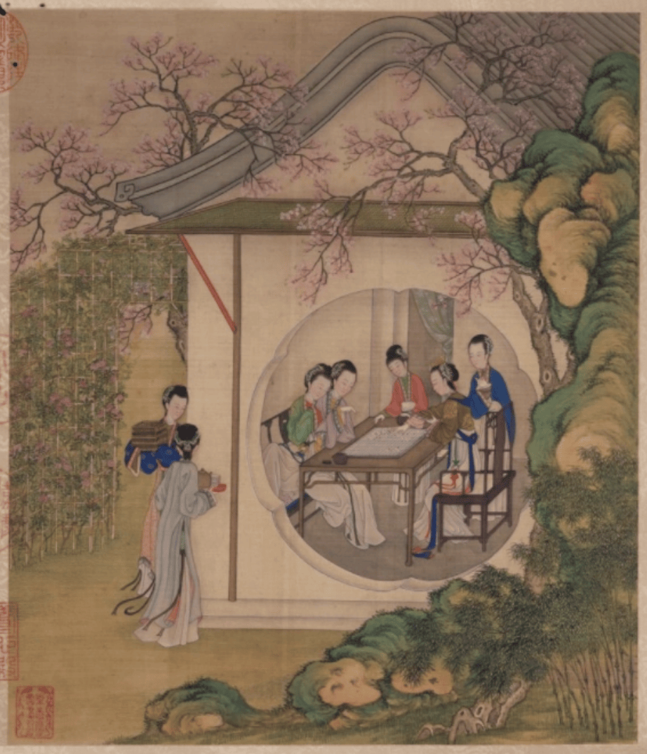 如《紅樓夢》賈府女眷飲酒作詩的羣像。