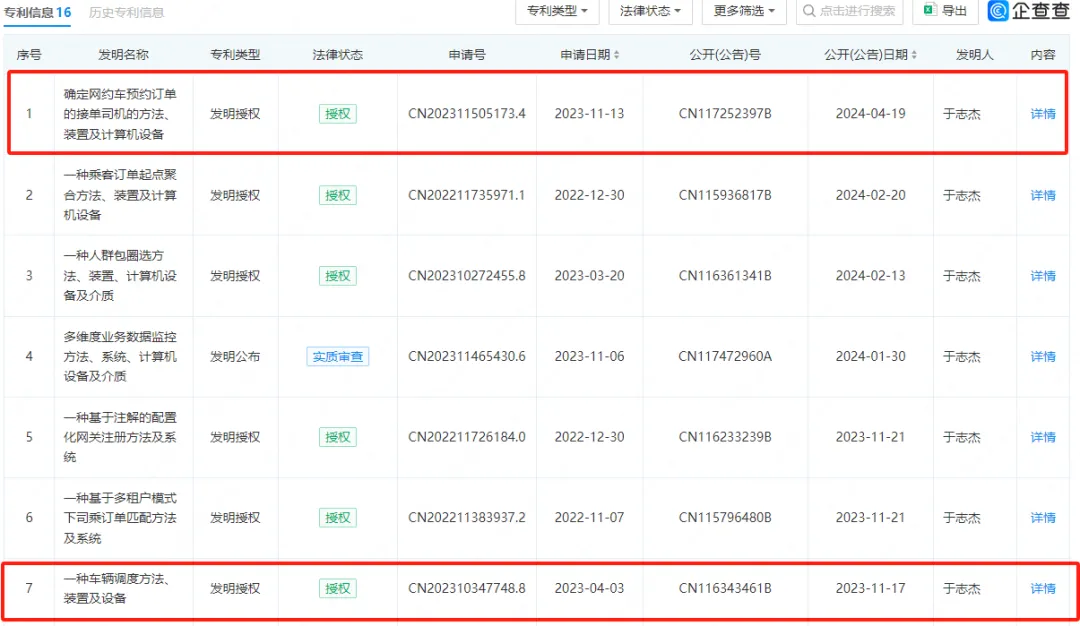 此外,廈門雲行對外投資的公司還有兩家分別名為北京龍駒易行和北京白駒易行的公司,其中北京白駒易行最新獲得專利中有“確定網約車預約訂單接單司機的方法裝置”“車輛調度方法、裝置及計算機設備”“網約車定價方法、裝置”……而北京龍駒易行的專利則集中於“代駕系統”,比如“基於代駕司機惡意繞路的封控方法”。