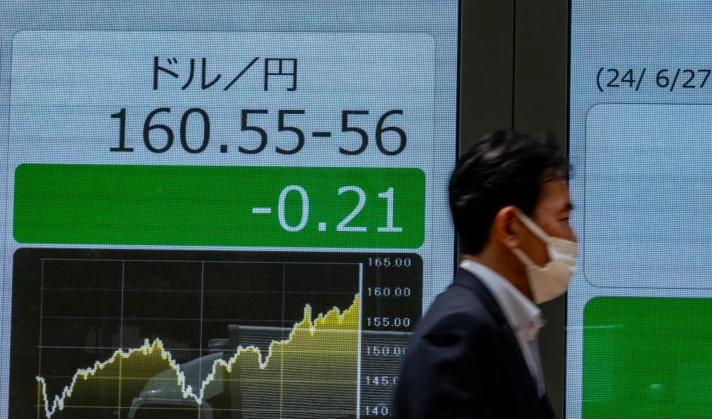 6月27日,日元對美元匯率創1986年12月以來新低。圖為行人走過日本東京一處顯示實時匯率的電子屏幕(圖源:路透社)