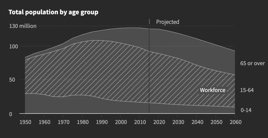 數據顯示,日本人口老齡化嚴重,未來將會持續出現勞動力短缺的情況(圖源:路透社)