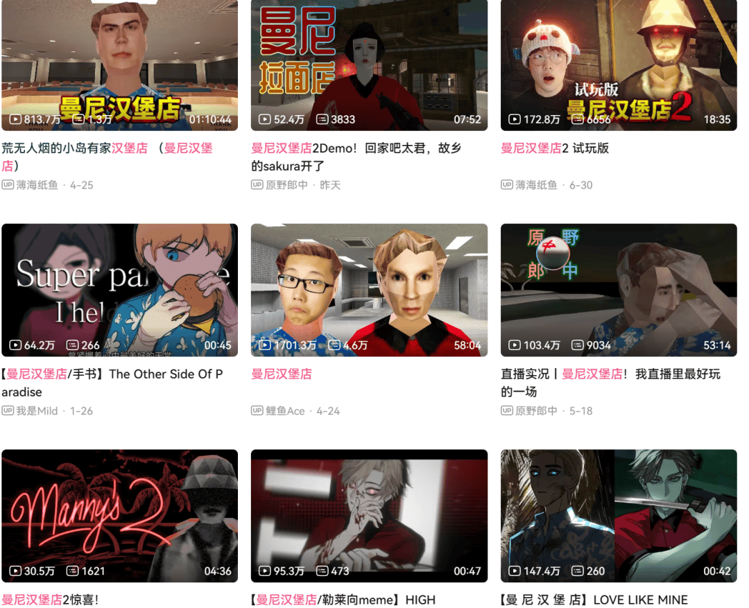 類似《曼尼漢堡店》這樣,藉着二創同人收穫熱度成為網絡MEME的例子,在獨立恐怖遊戲這個圈子其實並不少見,其特點就是圈內受眾習以為常,偶爾被其熱度所震撼的圈外人則大呼莫名其妙。