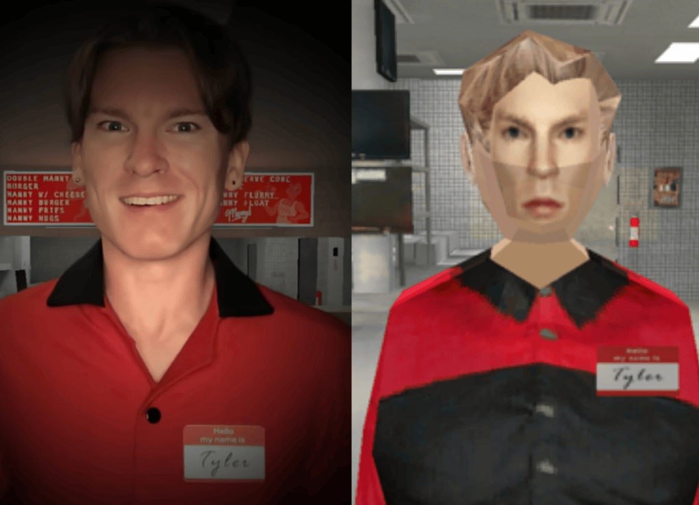 要説這些二創的最特殊的地方,就是在評論區裏總有人留言説“詐騙”——如果是隻看過這些二創的人,多半會將《曼尼漢堡店》想象為一個情節浪漫的遊戲,講述兩名主人公在漢堡店裏的相遇相知,但要是真去玩了這個遊戲,就會發現完全不是那麼一回事,