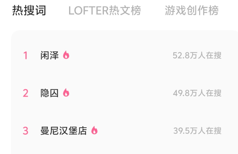 甚至打開Lofter的熱搜榜,也能看到《曼尼漢堡店》赫然排在前列。